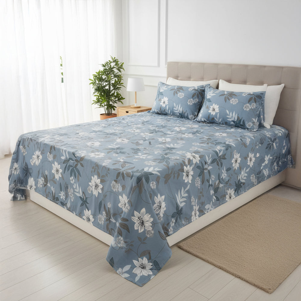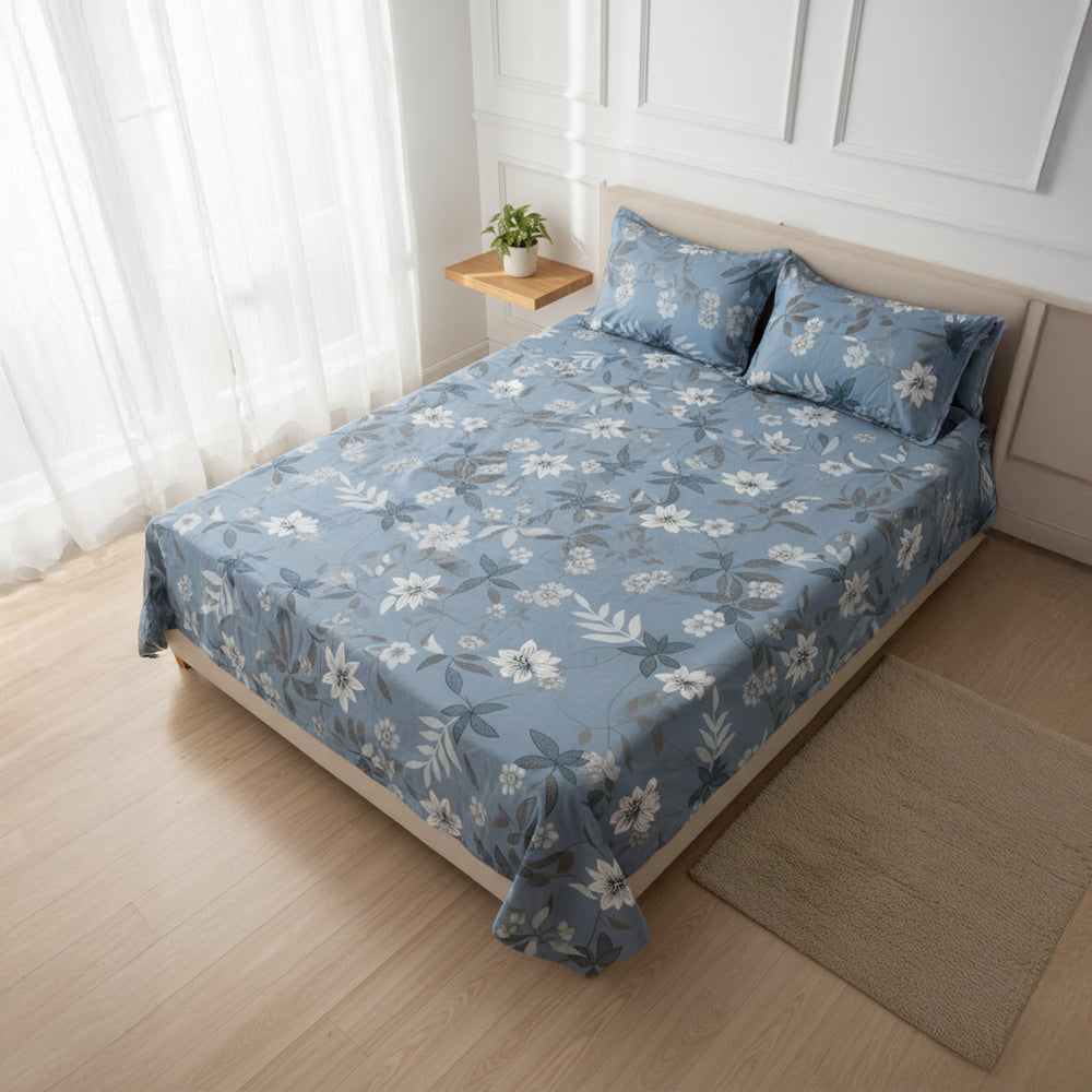 Add a touch of soothing elegance to your bedroom with this JivaCasa Dusty Blue Floral Bedsheet Set, crafted in premium-quality cotton for unmatched comfort. Designed in a calming dusty blue shade, the bedsheet features delicate floral motifs that bring a refreshing and serene vibe to any room décor.
